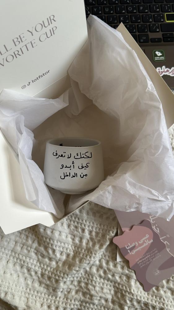 ياخذ تجهيز الطلب ٧ ايام عمل .رسم يدوي لذلك قد تختلف بعض السمات مثل (درجه اللون،حجم الرسمة،الخط ،...) من كوب لاخر .